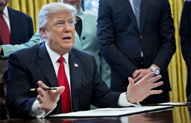 Image captionPresident Trump's order will be read as proof that the US government is anti-Muslim